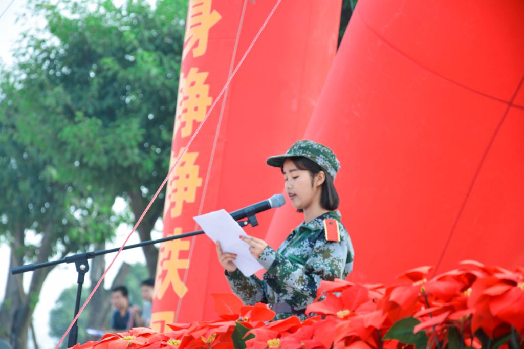 本次军训,承训部队全体教官充分发扬了人民子弟兵的优良传统和作风,严格按照军训计划,不辞劳苦,精心组织,严格要求,率先垂范,同时以饱满的政治热情、过硬的军事技能、严谨细致的军人作风影响并带动了同学们,使同学们在潜移默化中受到了良好的教育,增强了国防观念,坚定了爱国主义信念。希望同学们珍惜大学的美好时光,做理想远大、热爱祖国的人,做追求真理、勇于创新的人、做德才兼备、全面发展的人,做视野开阔、胸怀宽广的人,做知行合一、脚踏实地的人。这是学校领导和学生代表对新生们最诚恳的祝福。它将激励着每一个人在以后的学习生活中,奋勇向前,一马当先。