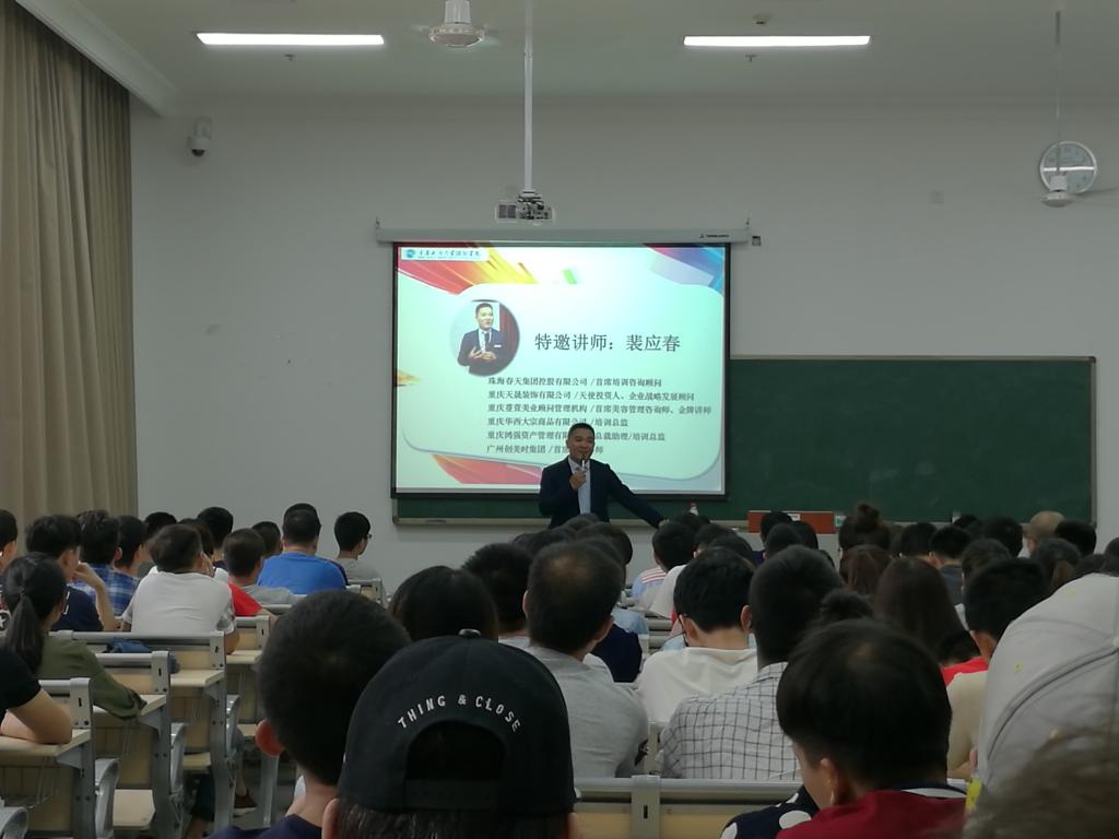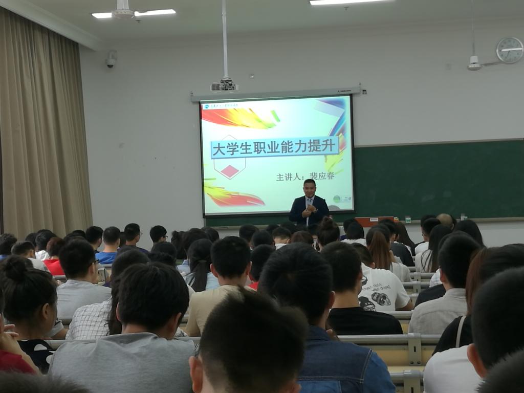 (通讯员 梁建良)为了充分培养工程管理专业学生的专业素养,提高学生在未来职场中的竞争力,9月20日,由我校管理工程学院主办的以“提升学生职业能力”为主题的讲座在1420教室顺利举办。本次讲座由管理工程学院黄兰副教授主持,由重庆鸿强资产管理有限公司总裁助理、重庆华西大宗商品有限公司裴应春先生担任主讲,工程管理专业部分专职教师以及2013级、2014、2015级工程专业学生参加。