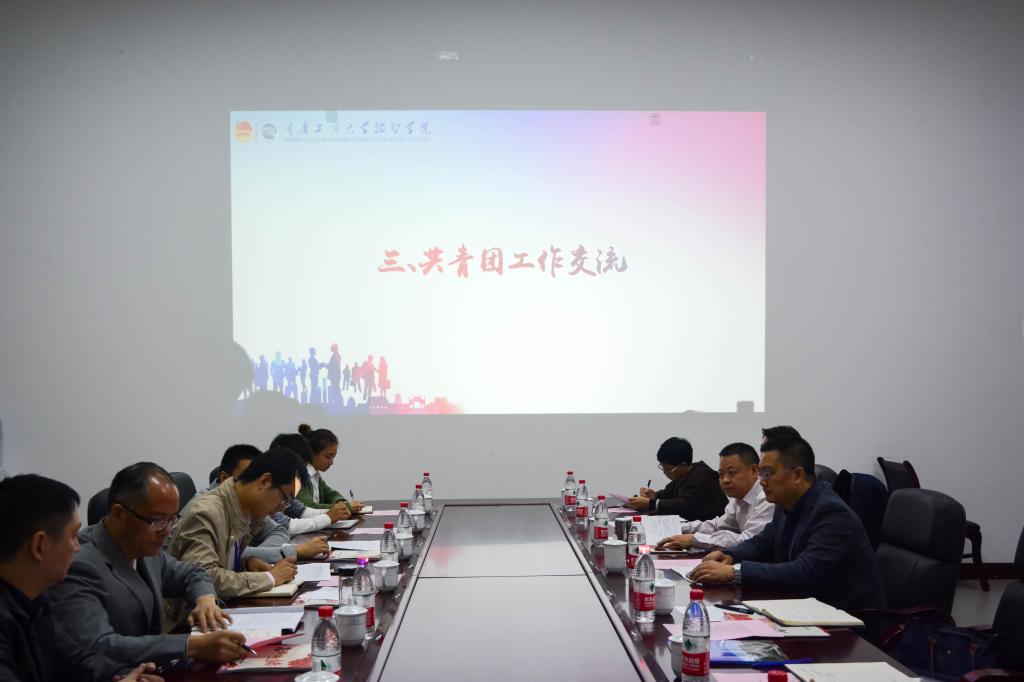 (通讯员 李刚)2016年10月12日下午,团中央社会联络部副部长刘德扬带领共青团重庆市委、重庆市志愿服务指导中心、共青团巴南区委相关负责同志来我校调研并指导工作。学校校长柏群、党委书记丁广龙、党委副书记陈龙国、校长助理李果代表我校热情接待了刘副部长一行。团市委志工部干部龙江,团区委副书记马逊,团区委青少年部副部长李政,我校团委副书记李刚,管理工程学院团总支书记王玲艳,商务学院团总支书记张斌以及各团组织学生代表参加了调研座谈会。