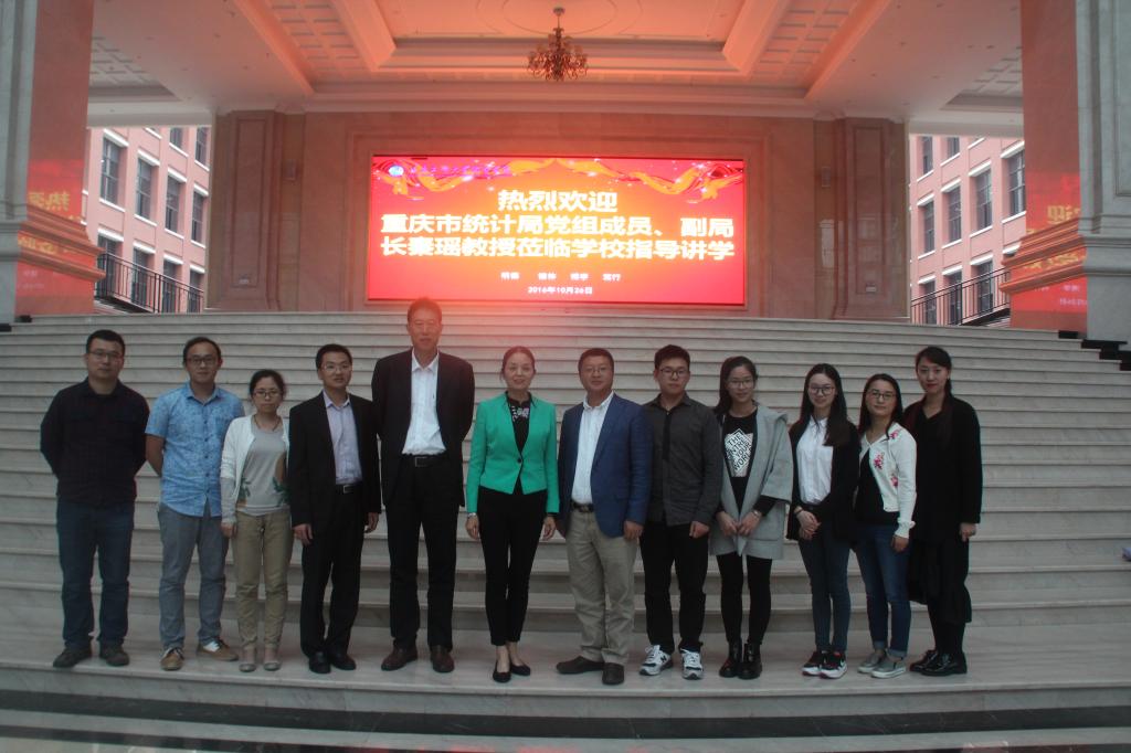 重庆市统计局党组成员、副局长、高级统计师秦瑶教授携两位研究生在教学楼1506教室为学院2015、2016级经济统计学专业的同学作了一场以《统计的世界》为题的专业讲座。
