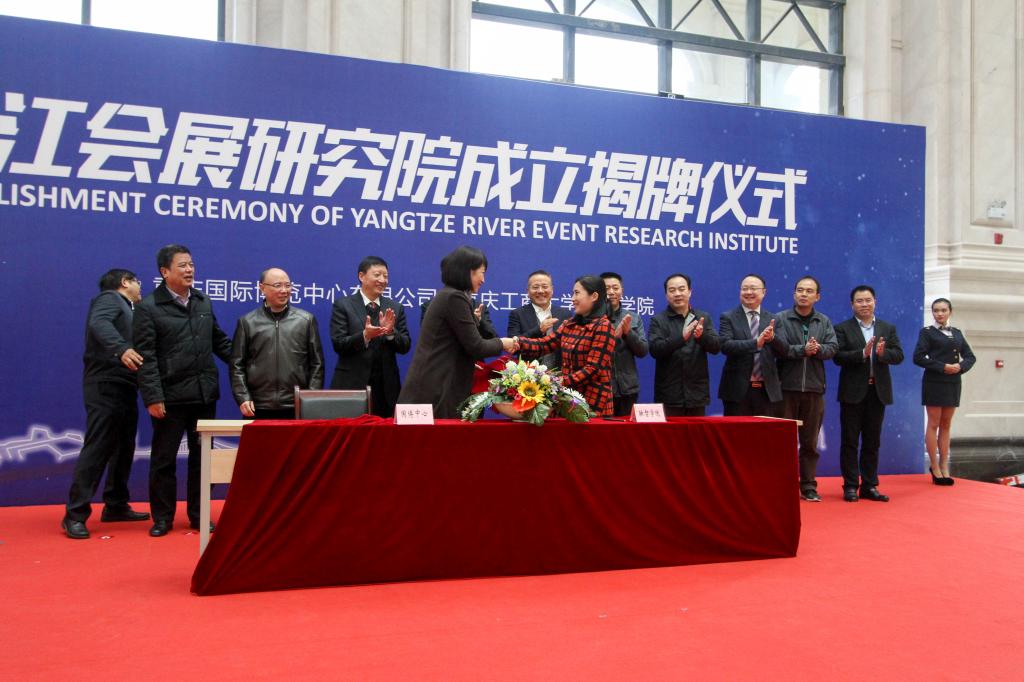 (通讯员 夏治禹)在重庆市与巴南区相关职能部门及社会各界的广泛支持,我校与重庆国际博览中心有限公司(以下简称“国博”)经过一年多的调研、磋商和论证,最终就建立校企合作达成一致,联合创立长江会展研究院。12月6日中午,长江会展研究院成立及揭牌仪式在教学楼大厅隆重举办。我校校长柏群教授、国博总经理宋薛利作为双方代表进行了签约并揭牌,巴南区委书记李建春作为揭牌嘉宾参与了揭牌。本次签约及揭牌仪式由我校董事长、新鸥鹏集团副总裁杜积西主持。