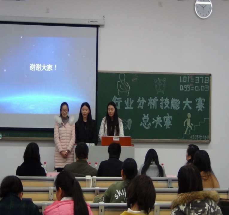 (通讯员 康宇杰 孔丽君)近日,由经济学学院主办、经济学协会承办、中国人寿财险赞助、面向全校同学的“国寿财险”杯第三届“行业分析技能大赛”决赛在教学楼1523成功举办。行业分析技能大赛从2014年开始举办,一直以来深受学校领导的重视,本届比赛在往届的基础上进行了赛制改革,并开始尝试走出校园,与业界进行衔接,由此,本决赛邀请了重庆市国际博览中心常务副总经理、我校产业教授纪伟,中国人寿财产保险巴南区支公司总经理简伟,重庆市社会科学院《重庆财政》杂志编辑部副主任何佳晓,我校教务处副处长滕学英金融学院专职教师郭静林一行担任此次大赛的评委;经济学院副院长李红平、经济学教研室所有成员作为嘉宾出席比赛。