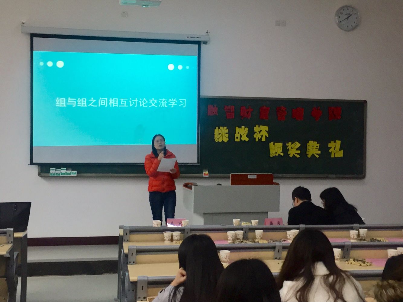 秉挑战之光前进,借科技之光圆梦。2017年3月21日中午12时10分,由财富管理学院举办的“挑战杯”座谈会暨颁奖典礼,在教学楼1306隆重举行。莅临本次活动的嘉宾有:学院学术带头人章新蓉、副院长赵娜、党总支副书记莫险峰、学团办副主任宋钰静以及各参赛队伍指导老师。