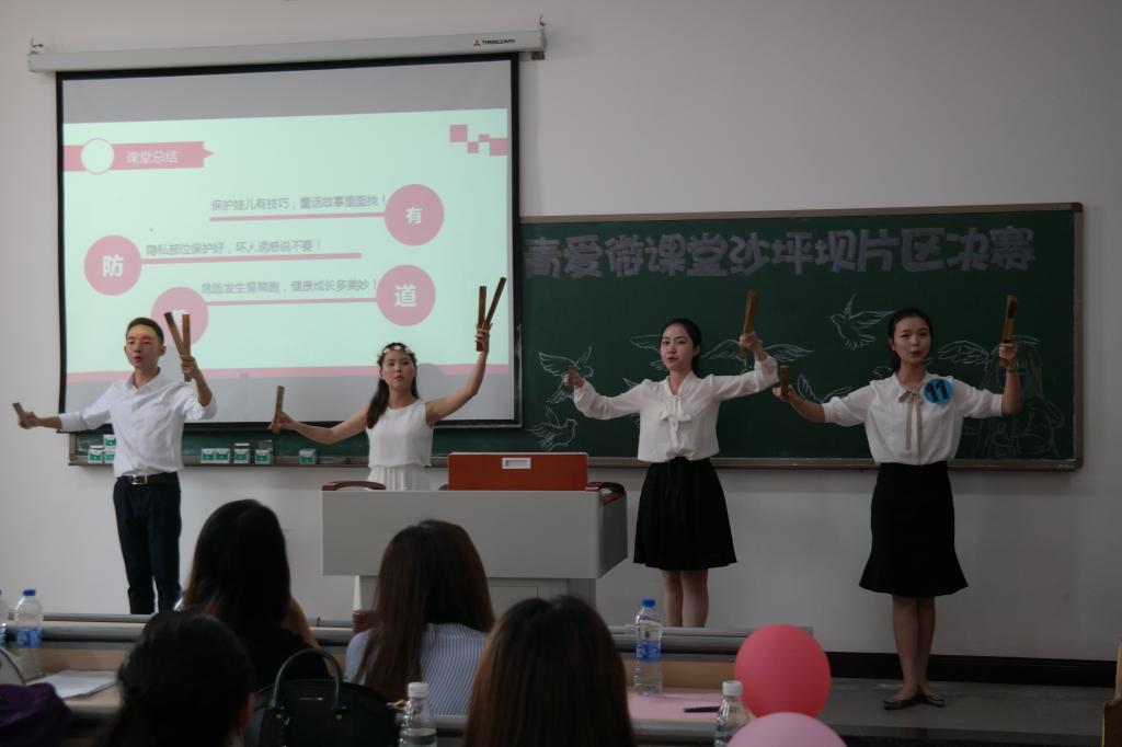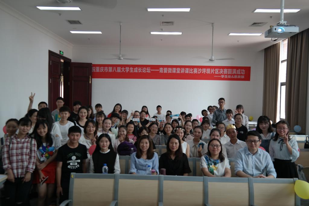 2017年5月19日14:30,重庆市第八届大学生成长论坛之青爱微课堂沙坪坝片区决赛在我校教学楼1321教室顺利举行。本次比赛由四川外国语大学心理中心专职咨询师张云喜、石巧品老师和我校思政部常晓薇主任、学生处杨惠琳老师担任评委,特邀我校思政部刘璐静老师、教务处刘洁老师、会计学院专职辅导员陈倩茹老师、心理健康教育与咨询中心李英老师担任点评嘉宾。