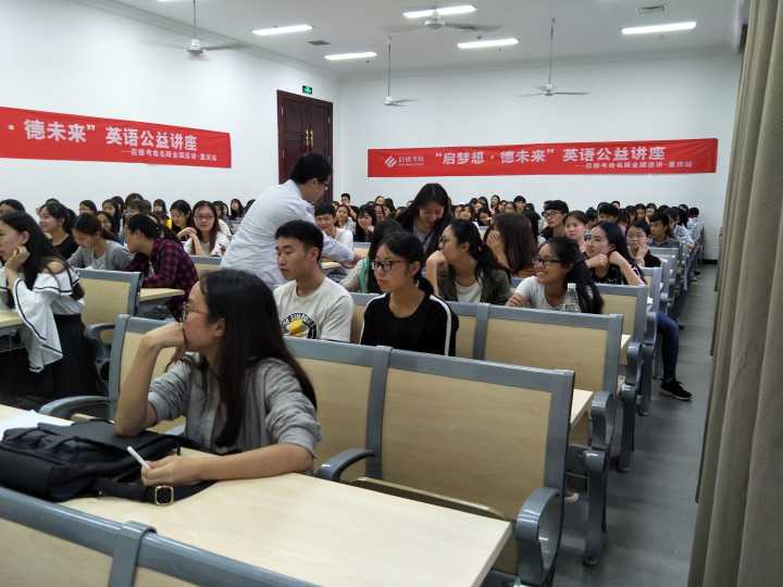 要“走出国门”,首先需要解决的问题的就是语言问题。语言不通,将寸步难行。而申请留学英语国家,雅思成绩又是门槛之一。针对这一点,李老师就考雅思的时间、如何考雅思、雅思题型、雅思的口语技巧、揣摩雅思作文的写作意图和把握写作重点等方面进行了详细的讲解。李老师的英式幽默,地道的英式口语和有趣游学见闻令讲座现场的气氛积极活跃,同学们更是踊跃地回答了李老师提出的问题。同时,启德雅思考培的工作人员还向讲座现场积极回答问题的同学送出了免费的雅思资料、精美雨伞等,以激励大家在英语学习上再接再厉。