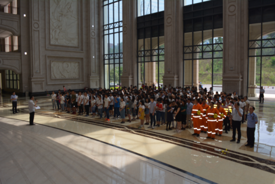 中午12点10许,各二级学院全体教职工及参加演习的学生代表及准时到达教学楼三楼大厅,在演习副总指挥欧英前的引导下快速有序地整队集合。随后总指挥、校党委书记丁广龙做演练动员讲话。讲话强调,本次演练目的在于贯彻落实我校消防安全宣传教育制度,大力宣传防火灭火及逃生自救常识,努力提高师生的消防安全意识,培养师生在遇到火灾等突发事件的应变能力,同时加强学校重大突发安全事件处理的综合指挥能力,提高紧急救援反应速度和协调水平,有效地预防和及时处置校园中突发的安全事故,切实保障广大师生的人身、财产安全。促进学校健康、稳定、可持续发展。号召全体教职工和同学们积极响应《中华人民共和国消防法》、《重庆市消防条例》、《高等学校消防管理规定》、《机关、团体、企业、事业单位消防安全管理规定》的要求,以饱满的精神,有条不紊的姿态投入演习,认真学习消防安全知识,提高自救、自护能力,把所学的知识、方法和技能带回同学中去,并向家人、朋友积极宣传。