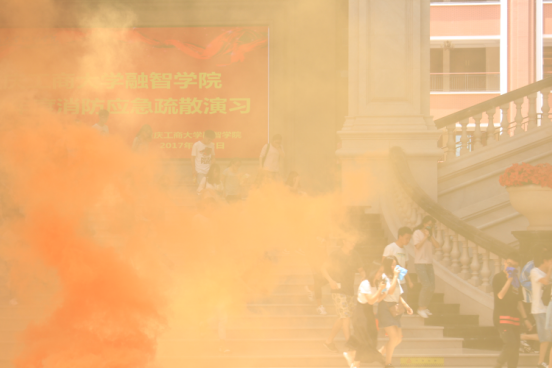 2017年6月2日中午12时10许,重庆工商大学融智学院开展了2017年度第一次消防应急处置演练。演练共分为十项议程,整个过程井井有条,高效有序。从理论到实践,切实提高了全校教职工、同学们的校园安全防范意识。