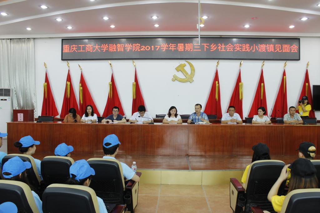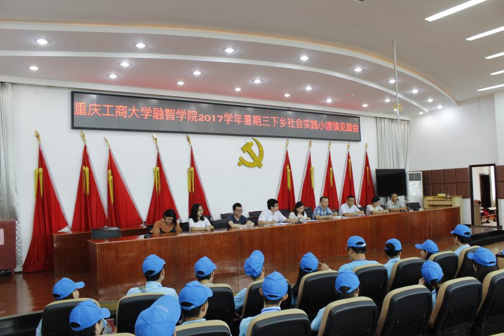 2017年7月8日中午,物流工程学院“三下乡”社会实践团队抵达潼南区小渡镇,与当地政府开展了暑期“三下乡”社会实践团队见面会。出席本次见面会的嘉宾有小渡镇党委副书记冯科、副镇长黄晓波、党委委员唐雪梅、黄坪村扶贫书记黄帮模以及物流工程学院团总支书记刘有沛、专职教师吴宗书。