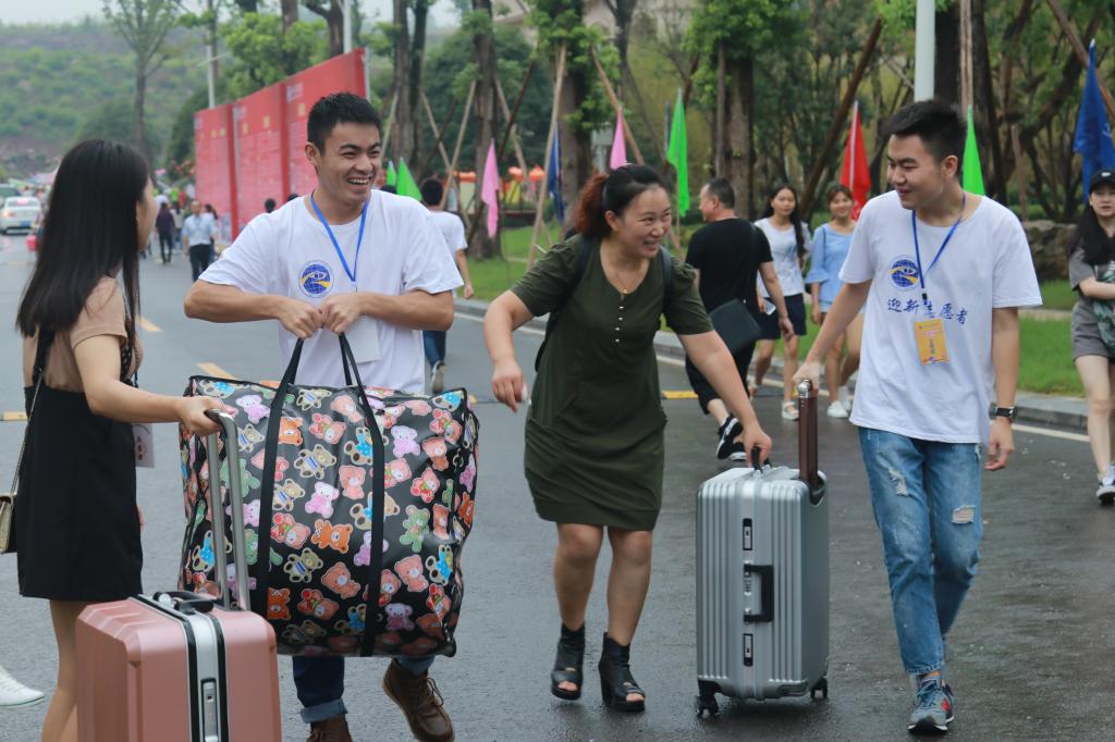 迎新的大厅里,人潮攒动,秩序井然。迎新志愿者们帮助新生们井井有条地完成注册、领取材料、激活校园卡、以及搬拎行李、办理入住宿舍等整个报道流程。为了让新生尽快的熟悉新的环境,更快的融入学校的生活,志愿者们向新生们级家长热情服务、细心讲解,事无巨细地进行帮助,一天半的时间,新生报道工作接近完毕,志愿者们已帮助接近全体17级新生完成注册报到,其中辛苦,不言而喻。他们热情而不辞辛劳,苦中作乐,各司其职,主动帮着拎行李和引路,与新生和家长们一路谈笑风生,用汗水和微笑诠释关爱。正是因为有了他们的辛勤付出,新生报到工作才更加的安全有序。