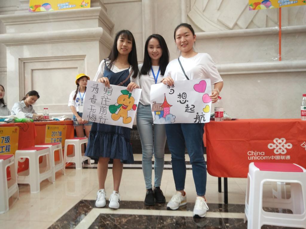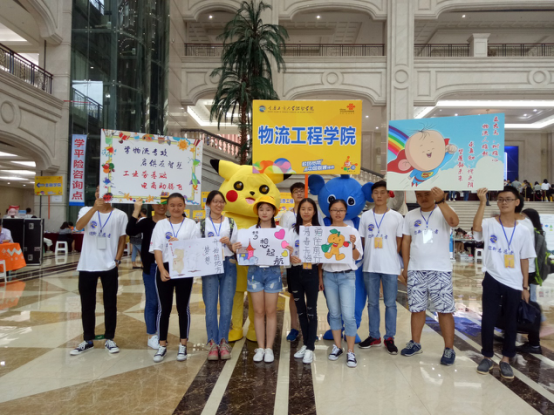 来到大厅,物流工程学院可爱的人偶装扮对新生们的到来表达了他们特殊的欢迎,积极地与新生们互动,合影留念,并指引他们进行正式报名。报名处志愿者们细心地处理新生的报到事宜,耐心地解答家长的疑问,迎新志愿者们则全程带着新生们走着报到所需流程并详细讲解校园常识,如校园卡如何使用、日用品如何购买等在校基本常识,新生们也大方地对志愿们者说出了自己心中的感谢,这使志愿者们干劲十足。会场上人头攒动却又井然有序,不仅有我们志愿者们辛勤奔波,也有物流工程学院老师亲自助阵,表现出学院对迎新工作的高度重视和对新生们的饱满热情。