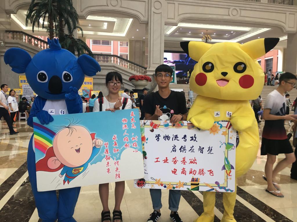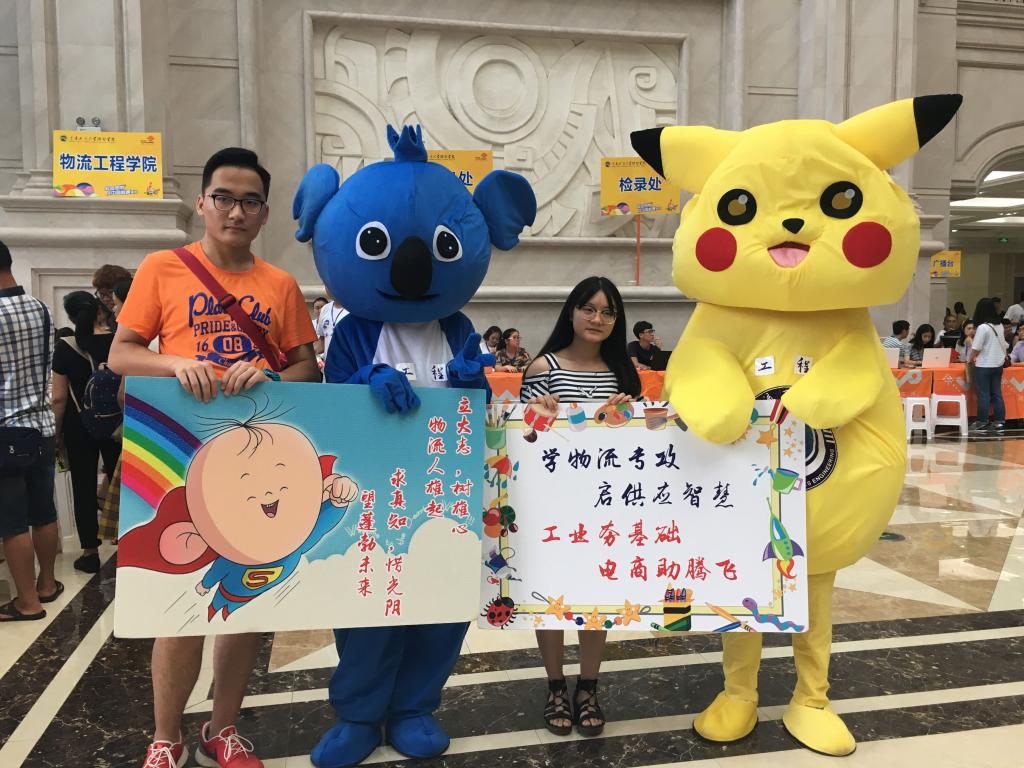 9月9日,学校迎接新生的工作如火如荼进行着,来自全国各地的2017级新生们陆续前来报道,“皮卡丘”和“考拉”也加入了物流工程学院迎新队伍中,让热闹的迎新现场更加地喜庆。