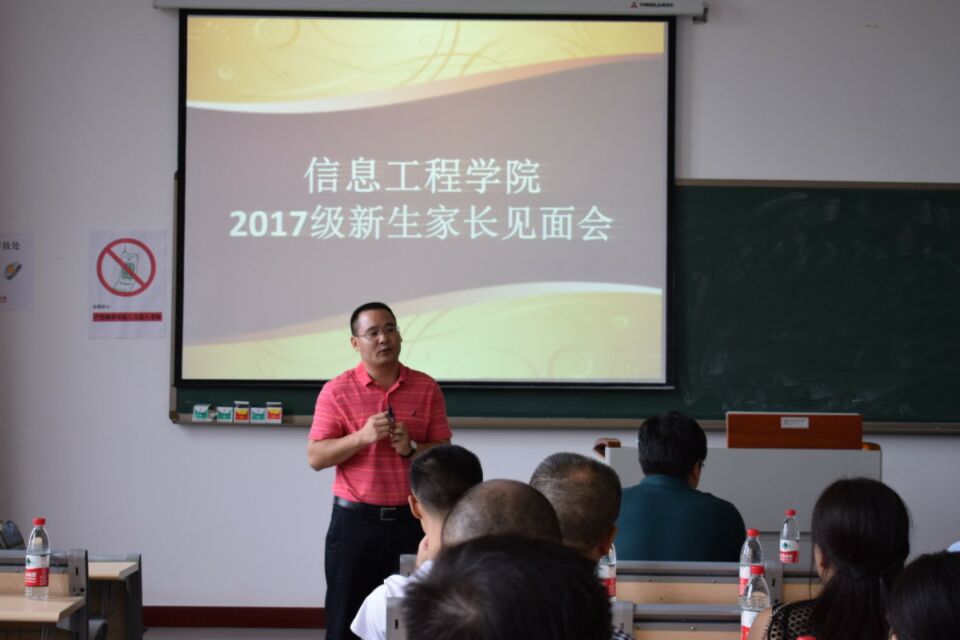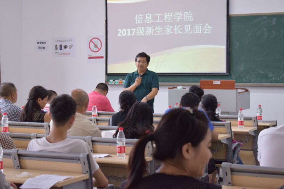 为了促进学生成长成才,加强学校和家长之间的沟通交流,为此信息工程院于9月9日14:00在1407教师召开了2017级新生家长见面会。出席此次会议的有信息工程学院院长周启刚教授、副院长姜文,党总副书记叶远帆、各专业专职教师老师及辅导员。