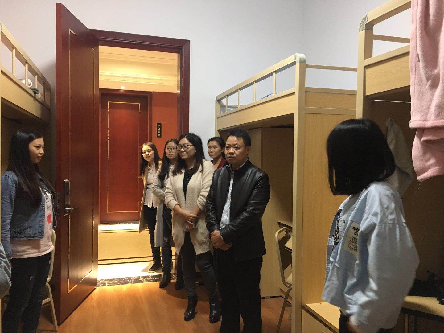党的十九大的召开使整个校园都沉浸在喜迎十九大的氛围当中,陈副书记带领巡查组的老师,走访了多个学生寝室,了解学生十九大的学习状况,鼓励学生多了解国家大事,了解党的方针政策,以大局观念规划自己的学习。