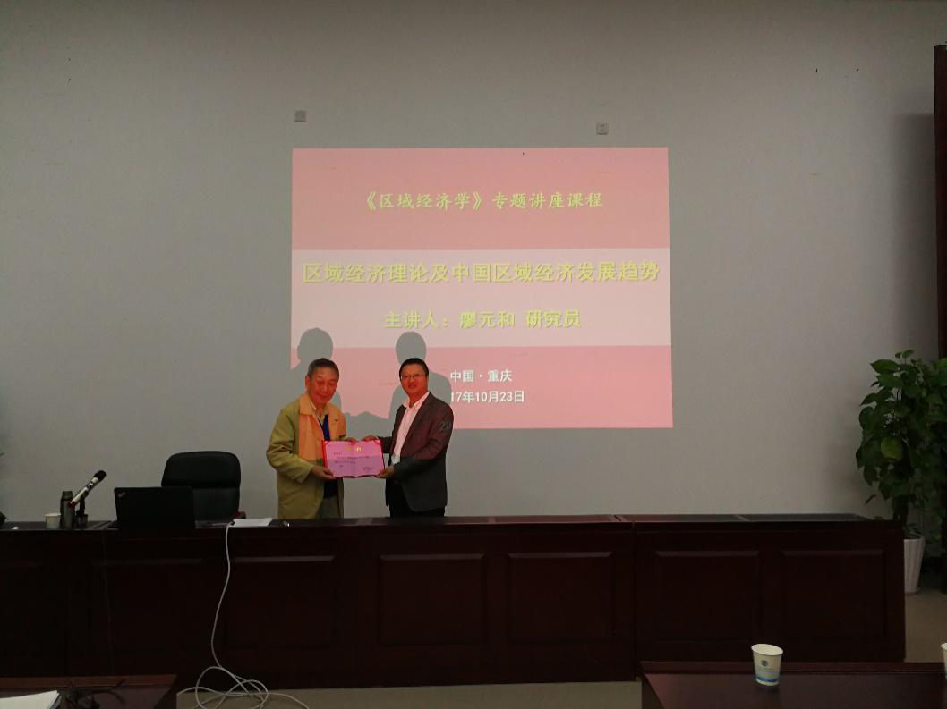 2017年10月23日上午9点30分,在学校1206会议室,原重庆工商大学副校长廖元和研究员做客重庆工商大学融智学院经济学院的《区域经济学》课堂,为全体师生带来了一场以“区域经济理论中国及中国区域经济发展趋势”为题的专题讲座。