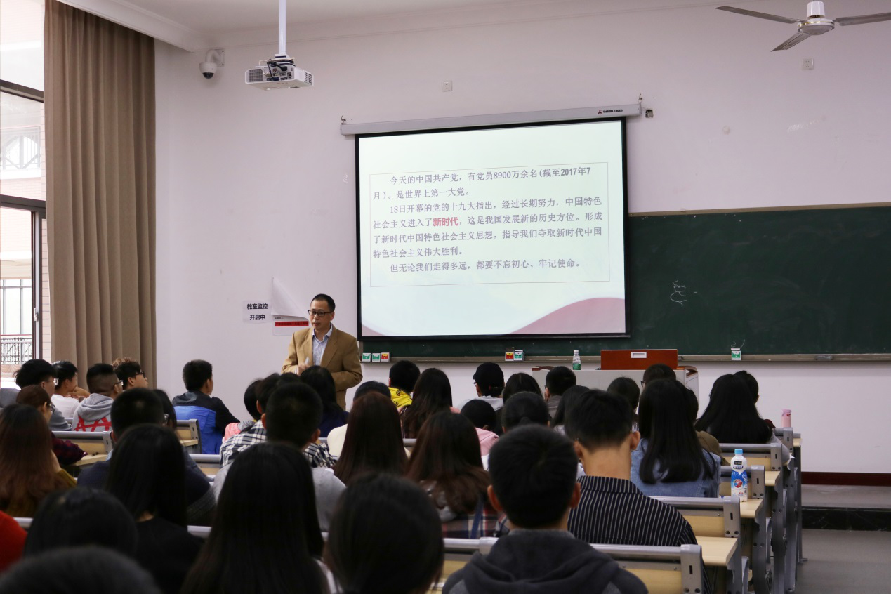 课上,周希贤教授以十九大为开端,阐述了中国共产党的性质和宗旨、中国共产党的指导思想、马克思主义与时俱进的理论品质、一个中心两个基本点、全面建成小康社会的基本内涵、全面深化改革的主要任务、全面依法治国的意义和侧重点、全面从严治党的本质要求等党的理论。并给学员们进一步解读了中国共产党是中国特色社会主义事业的领导核心,中国共产党以马克思列宁主义、毛泽东思想、邓小平理论、“三个代表”重要思想和科学发展观重要思想。周希贤教授轻松的课堂使得学员们在学习中得到了享受,对概念和道理深入理解,渗透人心。在课堂最后,周希贤教授激情昂扬的表示作为一个古稀之年的老党员,他相信中国会在党的领导下日益强大,中国会在国际的舞台上发挥越来越重要的作用!在学员们雷鸣般的掌声中,周教授激励学员们积极学习科学文化知识,提高自身精神素养,争取早日入党。