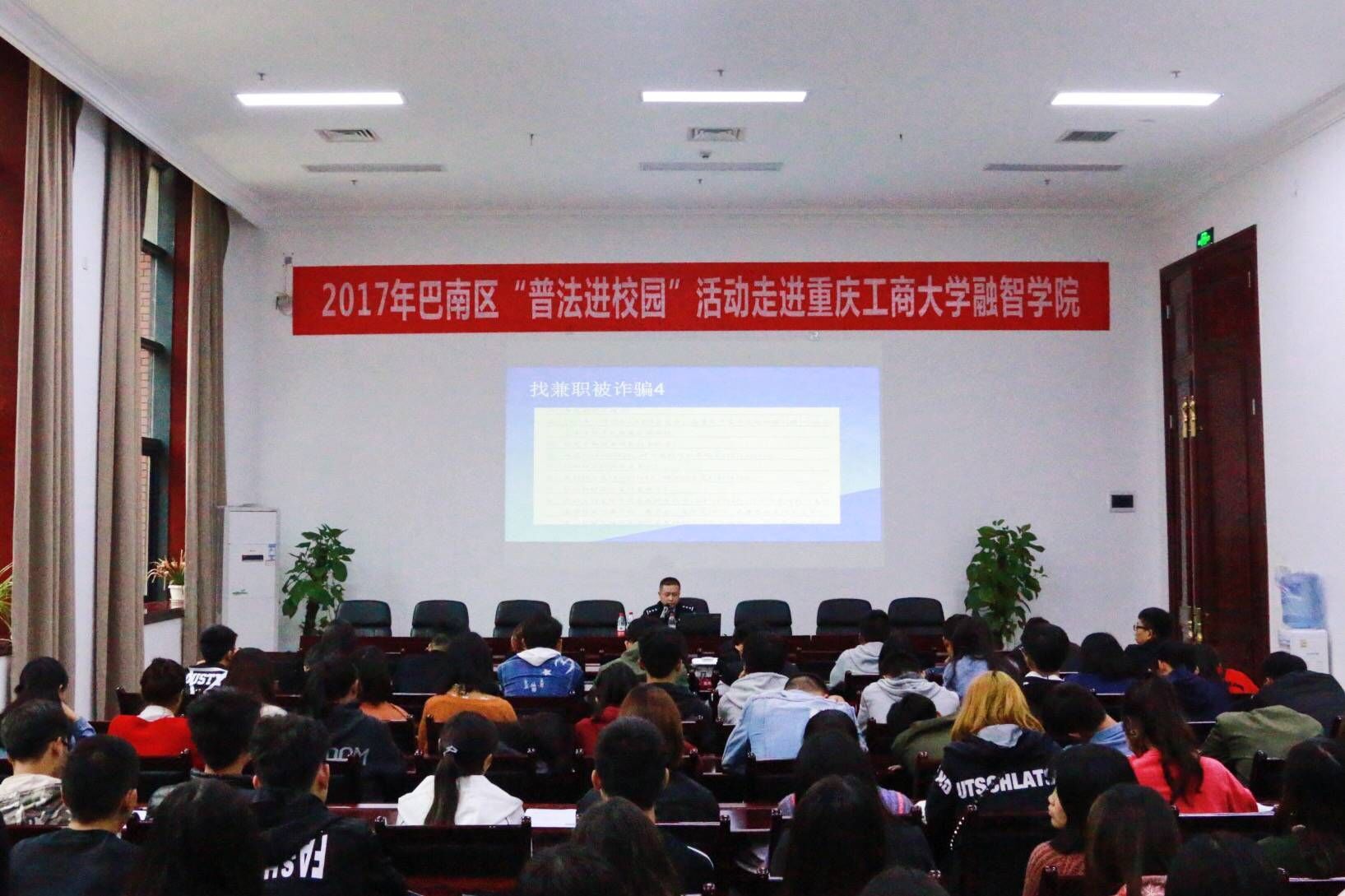 2017年10月25日下午14:30由共青团巴南区委主办,校团委承办的2017年“普法进校园”讲座在1206会议室顺利举行。本次活动旨在加强学生的法制教育,丰富学生的法律知识和提高自我保护能力,能够学法、懂法、用法,增强法制观念,提高自我保护意识,自觉遵纪守法,做一个知法守法的合格公民巴南区“七五”普法讲师团成员区公安民警李博作为嘉宾为我校学子带来了一场主题为“校园防诈骗”的精彩讲座