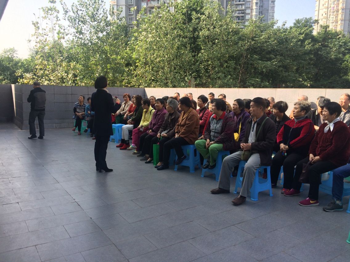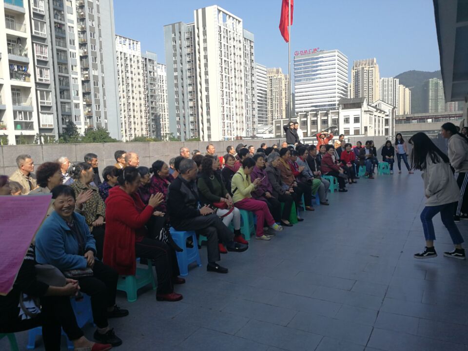 当同学们一行准时到达龙海社区的天台时,老人们已经早早的坐在了座位上,期待的目光齐齐望向了同学们,并和同学们热情打招呼欢迎同学们的到来。在简短的互动后,我们的表演便首先开始了,文体部的两位同学率先为老人们跳了一段舞蹈,当这富有喜庆气息的音乐开始播放时,会场上就充满了欢快的气氛,有的老人们为两位跳舞的同学打拍子,有的老人高声喝彩,都夸奖同学们表演的好。