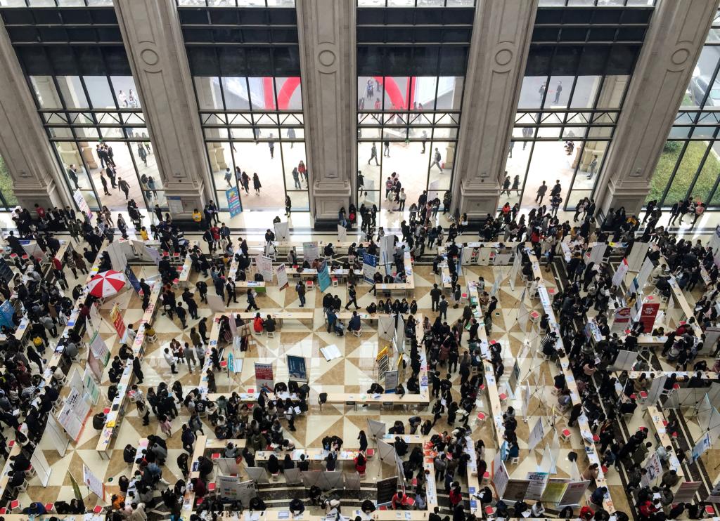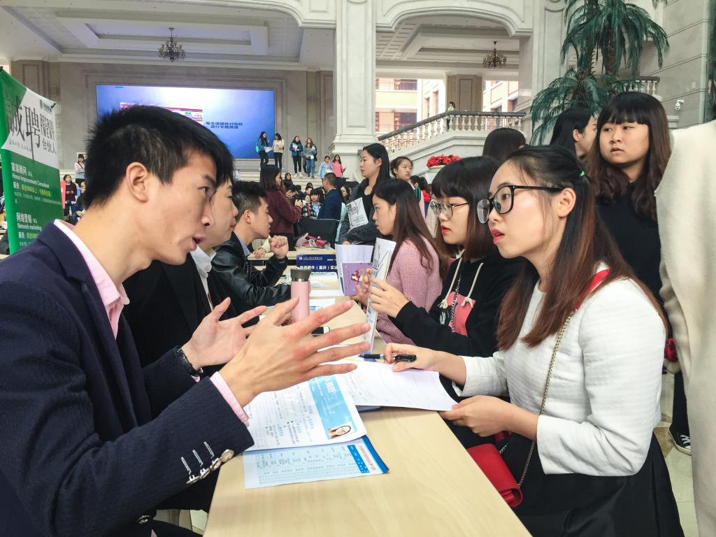 校园双选会力促就业,融智毕业生大展宏图。为推进2018届毕业生就业工作,构建企业与毕业生交流平台,11月3日上午9时,我校2018届毕业生双选会在教学楼大厅开展。230余家用人单位、3500余个工作岗位,1500余名参会学子在本次双选会上得到了全面的互动。