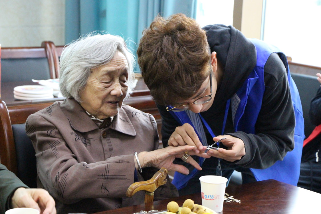 团学志愿者来到松柏林社区,在社区服务人员帮助下布置会场、准备节目。本次活动中,志愿者们为老人修剪指甲、分发慰问品和分享节日蛋糕。紧接着到了游戏时间,有奖问答、击鼓传花各种有趣的游戏让原本安静的现场充满了欢声笑语,看见老人们的笑容,让志愿者团队由衷的开心。有位老爷爷还激动地为大家献唱,虽然年纪大了,声音也哑了,但在我们的耳中,却是最美好的歌声。最后,志愿者还为老人们普及了一些健康知识,为老人们的日常生活提供了更好的健康选择。