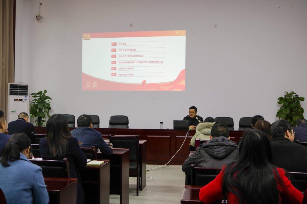 丁书记就党的十九大主题、成果、党的十八大以来取得的成就、党的十九大与教育等6个方面,结合实际案例,深入浅出的为同志们解读了大会相关内容。