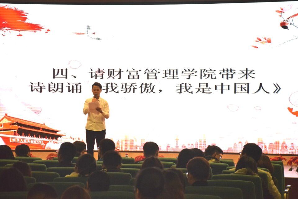 此次演讲比赛在庄严的国歌声中了拉开序幕,全体起立奏唱国歌。活动第二项是由商务学院同学带来的舞蹈《我的中国心》,她们用每一个铿锵有力的舞蹈动作向我们表达了自己坚定的爱国情怀。表演结束后,主持人宣读评分细则,比赛即将开始,现场的气氛立刻紧张起来。