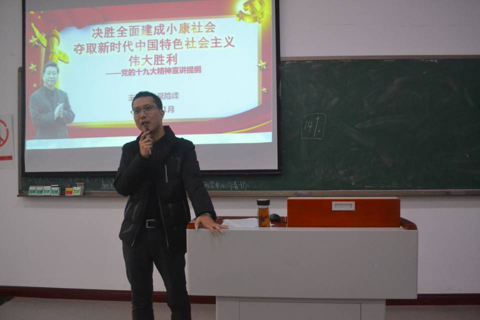 为了深入学习宣传贯彻党的十九大精神,在学校党委的安排与部署下,财富管理学院党总支分别于1129日和30日的中午123014:00,在教学楼1613教室召开了党的十九大精神宣讲会。本次宣讲会的主讲人是财富管理学院党总支副书记莫险峰,学院教职工及部分学生代表近两百人参加学习。