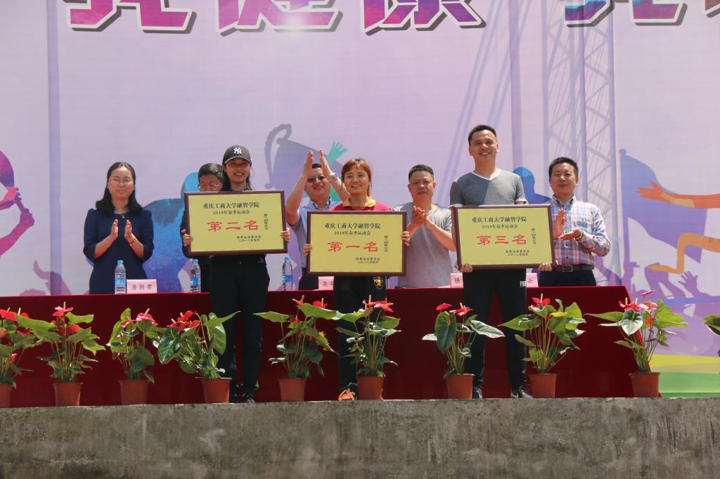 闭幕式上,陈副书记介绍了出席闭幕式的嘉宾,并向取得优异成绩的运动员们表示热烈的祝贺。随后,本次运动会总裁判长贺小卫老师宣布了获奖的学生与教职工代表队,财富管理学院以优异的成绩获得了男子团体第一名的好成绩,会计学院荣获女子团体总分第一名。学生团体总分前三名的分别是会计学院、物流工程学院和商务学院。此外,会计学院工会、物业服务中心代表团、物流工程学院工会为本次运动会教工组优秀组织奖代表队,还有其他许多优秀团体都在本次运动会会中取得了很好的成绩。由出席闭幕式的嘉宾向各获奖代表队颁发了奖牌。