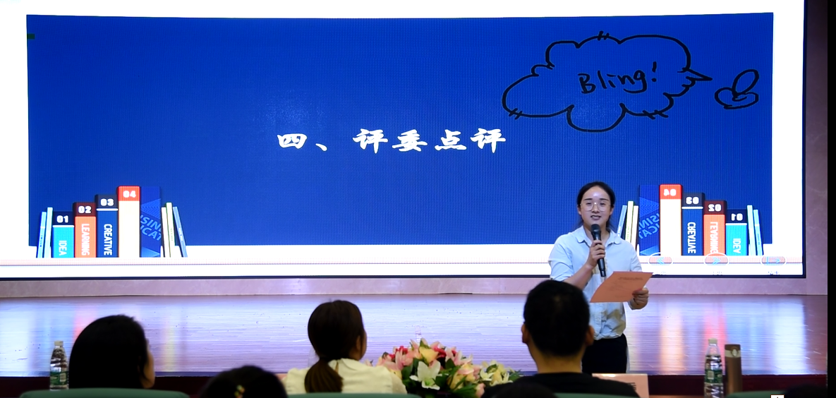 比赛最后,四川外国语大学中文系朱文英老师从四个方面对本次比赛进行点评:一是主讲人和助演之间要配合默契,表现真实;二是讲课要语速适中、吐字清晰、声音宏亮的要求;三是主讲人应当注意在讲台上的仪容仪态,落落大方;四是主讲人不应局限于PPT的内容,而是充分熟悉内容,讲解流畅自然。