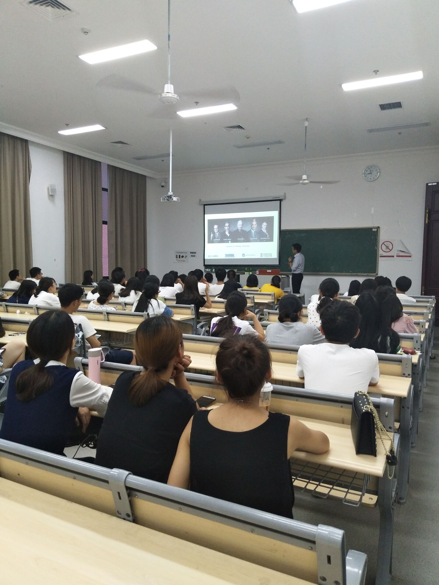 讲座伊始,胡晓天代表首先介绍了韩国又松大学与我校友好合作历程。两校自2013年至今一直保持着友好和谐的合作关系。其次,韩国又松大学就双方合作开展的国际交换生项目为我校学生提供一个学费全免、三个学费半免的名额。紧接着,胡晓天老师介绍了韩国又松大学的师资、学院设置、学科特色和教学环境,并用视频短片的形式展示了学校国际学生风采等,并欢迎同学们到韩国有松大学交流和学习。