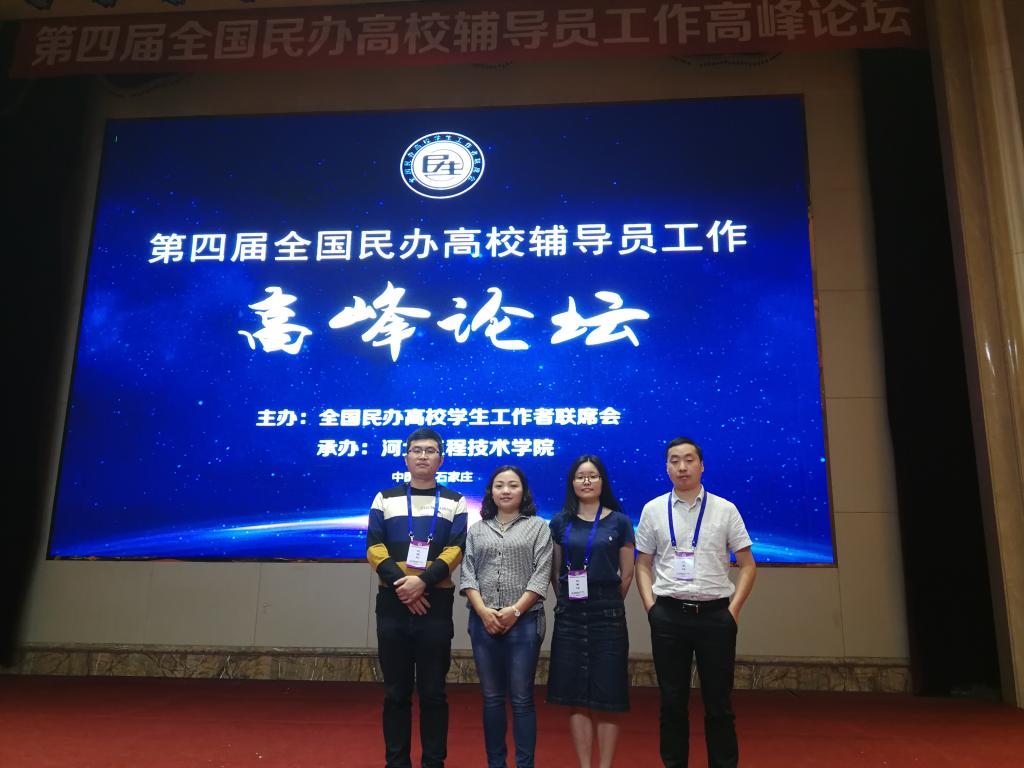 贯彻落实全国高校思想政治工作会议精神,围绕立徳树人的根本任务,提高立徳树人主力军的职业能力。由全国民办高校学生工作者联席会主办、河北工程技术学院承办的第四届全国民办高校辅导员工作高峰论坛在石家庄隆重举行。我校一行四人参加了此次论坛,该论坛由全国民办高校学生工作者联席会会长张振笋主持。