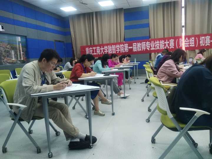 开幕式结束后,分别在1220教室和1409教室举行了第一届教师专业技能大赛(财会组)初赛的理论知识测试和会计账务处理两个环节的竞赛。