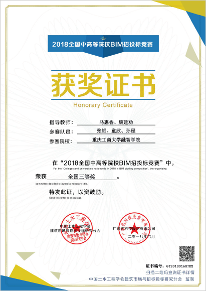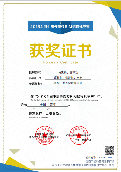 随着电子招投标技术在国家及各省市公共资源中心的建设推广,BIM+电子招投标技术在规范和净化招投标环境的应用越来越重要,掌握基于BIM的电子招投标技术成为建筑工程相关专业学生重要的技能,为了促进全国中高等院校的共同学习和交流,中国土木工程学会建筑市场与招标投标研究分会与广联达科技股份有限公司特举办“全国中高等院校第二届BIM招投标网络竞赛”。我校管理工程学院学生王静、谭舒化、侯继然、张铝、孙程、童欣分别组成两支代表队,在康建功老师和马惠香老师的指导下代表我校参加全国竞赛。