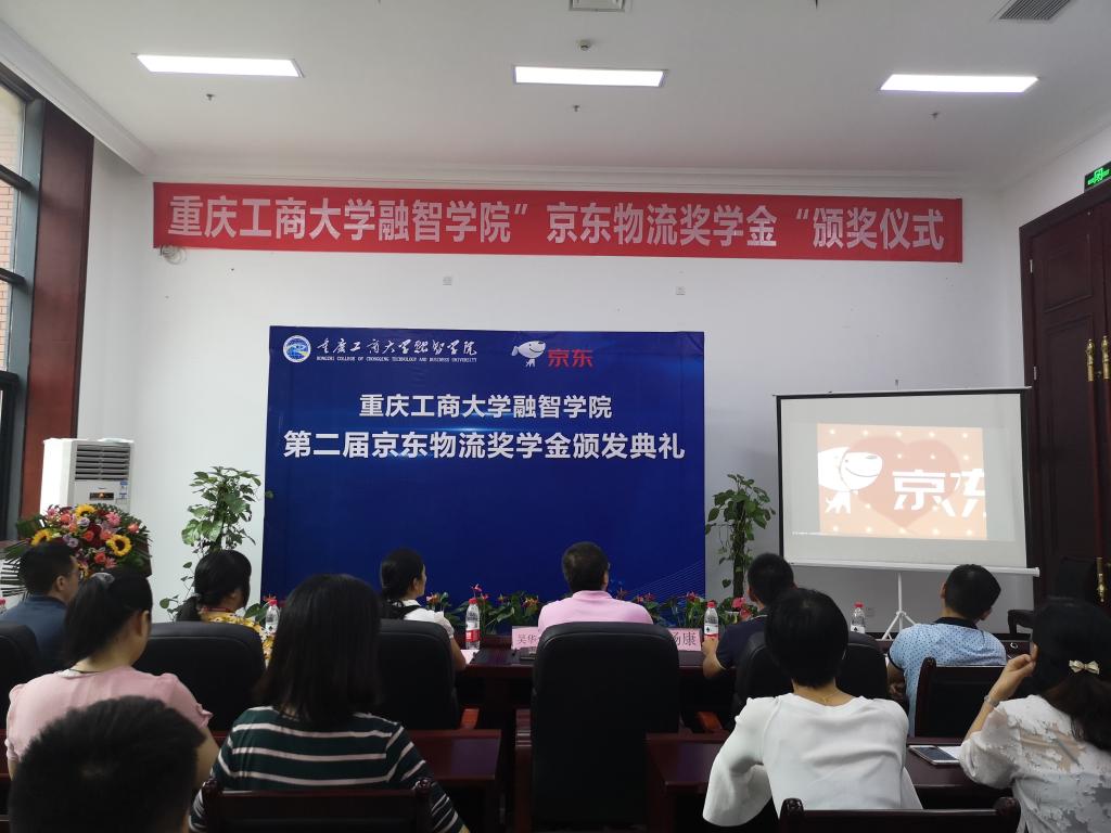 2018年7月6日上午,物流工程学院第二届“京东物流奖学金”颁奖仪式在教学楼1206会议室隆重举行,京东重庆分公司仓储经理杨康先生,京东重庆分公司仓储团队人资负责人刘欢主管,重庆工商大学融智学院吴华安副校长,物流工程学院刘岱院长,物流工程学院党总支李喆副书记等领导出席会议。
