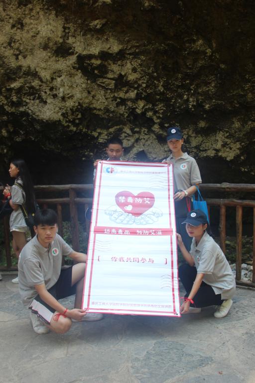 为了锻炼大学生志愿者的各项义务劳动技能,增长服务经验,也为了让更多的人了解教育关爱和禁毒防艾的相关知识,重庆工商大学融智学院财富管理学院“三下乡”志愿者于2018年7月21日来到武隆龙水峡地缝旅游景点开展“青春红丝带――控制蔓延,共享生命”和“青春教育我先行,民族传统我弘扬”宣传活动。
