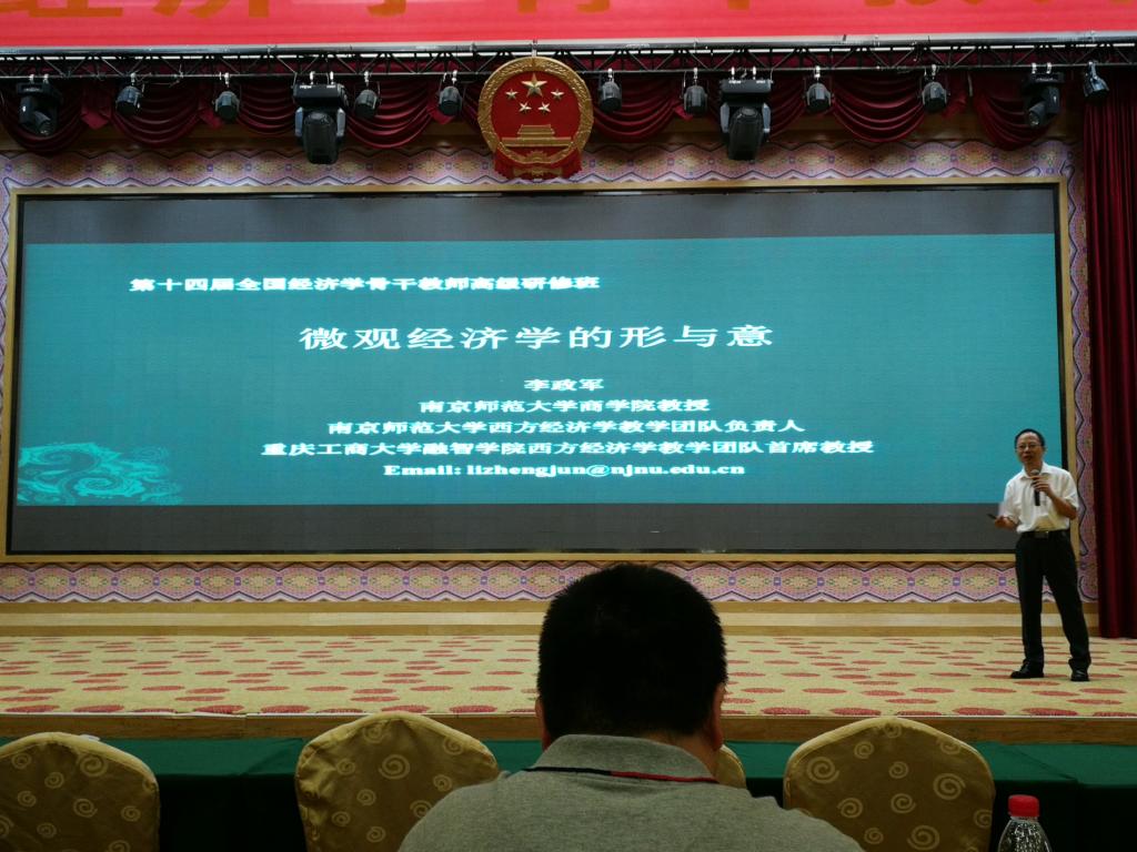 同时,我校经济学教学团队首席教授、南京师范大学商学院教授李政军老师受人大出版社邀请,在此次高级研修班中将作为培训专家进行讲座。据悉,这已是李政军教授连续第四年作为主讲教师,受邀参加由人大出版社主办的“经济学骨干教师高级研修班”。