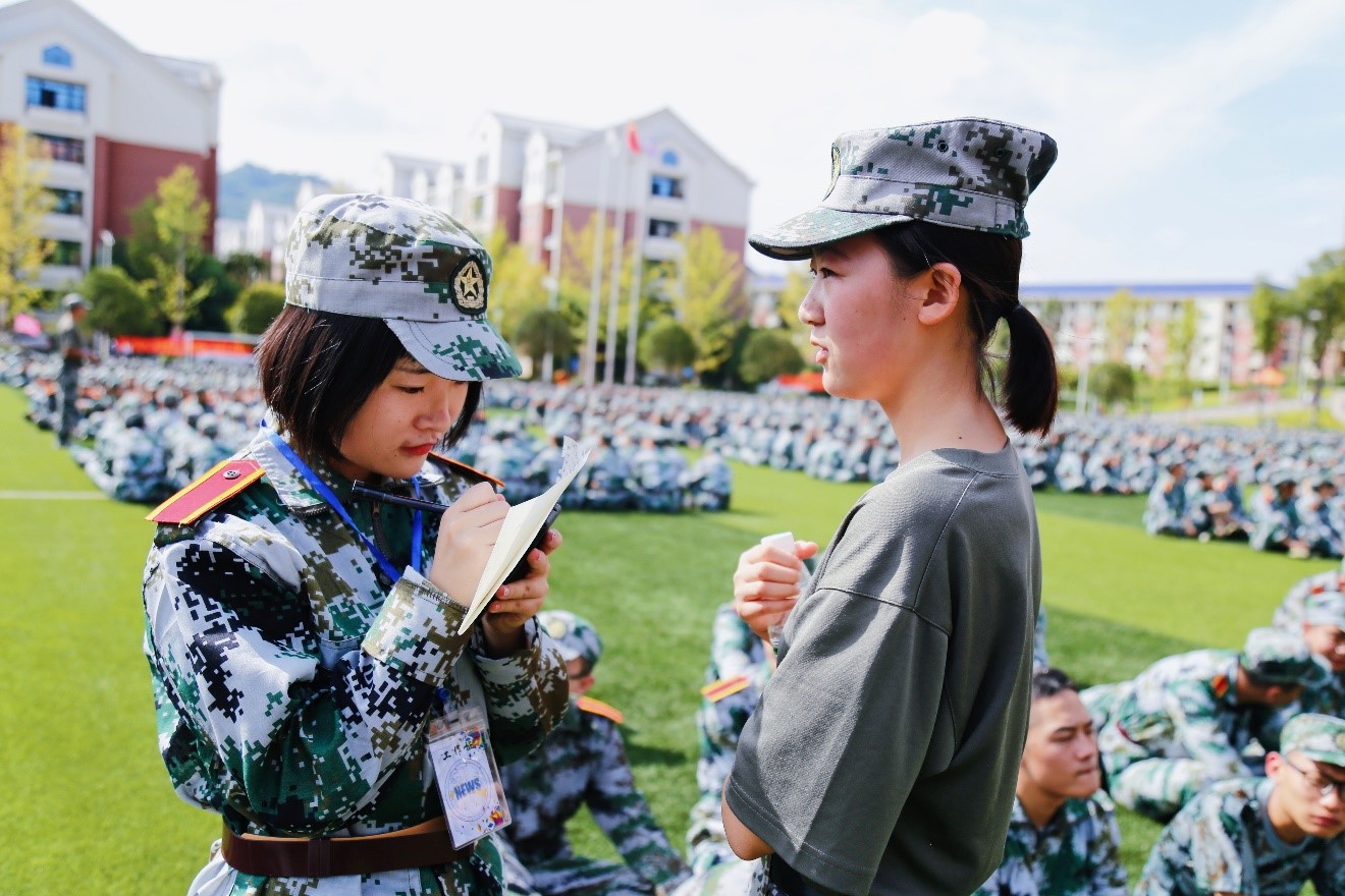 伴随着洪亮严厉的哨声,迈着整齐有力的步伐。无一不展现出同学们吃苦耐劳的精神。在军训中,有几位同学的感受是又苦又累,但也有人学会苦中作乐,三营十八连的这位同学告诉记者:“他觉得大学军训并没有想象中的累,为他的大学生活拉开了一幅美丽的画卷。才一天的训练,他们已经学习了停止间转法,齐步走,摆臂练习,敬礼,蹲下,起立等动作”。同样这位同学及他们连的其他同学一致觉得三营十八连的教官很和蔼,并没有想象中的严厉。给他们留下美好的形象,虽然对待他们严格,但总会在他们累的时候带领他们休息,喝水,和同学谈话。