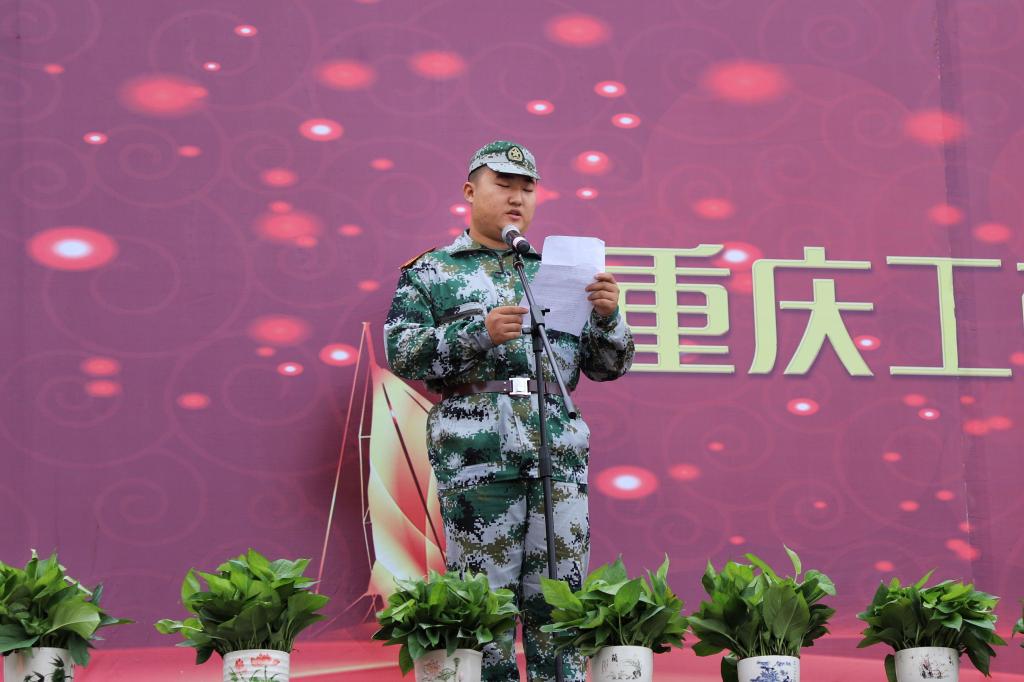随后军训动员大会拉开帷幕。随着《中国人民解放军军歌》的响毕,校长助理房朝君宣读了《关于2018级学生军训团成立及干部任职决定》,表达了校方对于参训人员的要求。随即,开训新生代表作出生活中树立远大目标适应大学生活,学习中学有所成提升实践能力,工作中参与活动丰富生活培养能力等三点承诺。承训部队军官范伟团长在讲话中指出军训的重要性以及军训对于学生意志的磨砺,身心的成长的不可替代的作用。