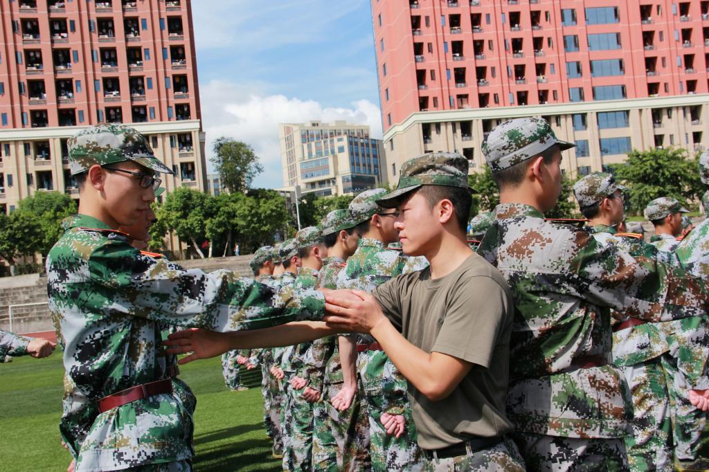 午后两三点的阳光最是热烈,而同学们的口令声却也最为响亮。既然风雨击不垮我们挺拔的胸膛,那么烈日阳光也驱不散我们的满心热情。正如邓同学所言,有艰难困苦,有汗流满面,但更多的是烈日教会我们成长,是整齐划一教会我们团结的力量,是在服从指令中学会坚韧不拔。
