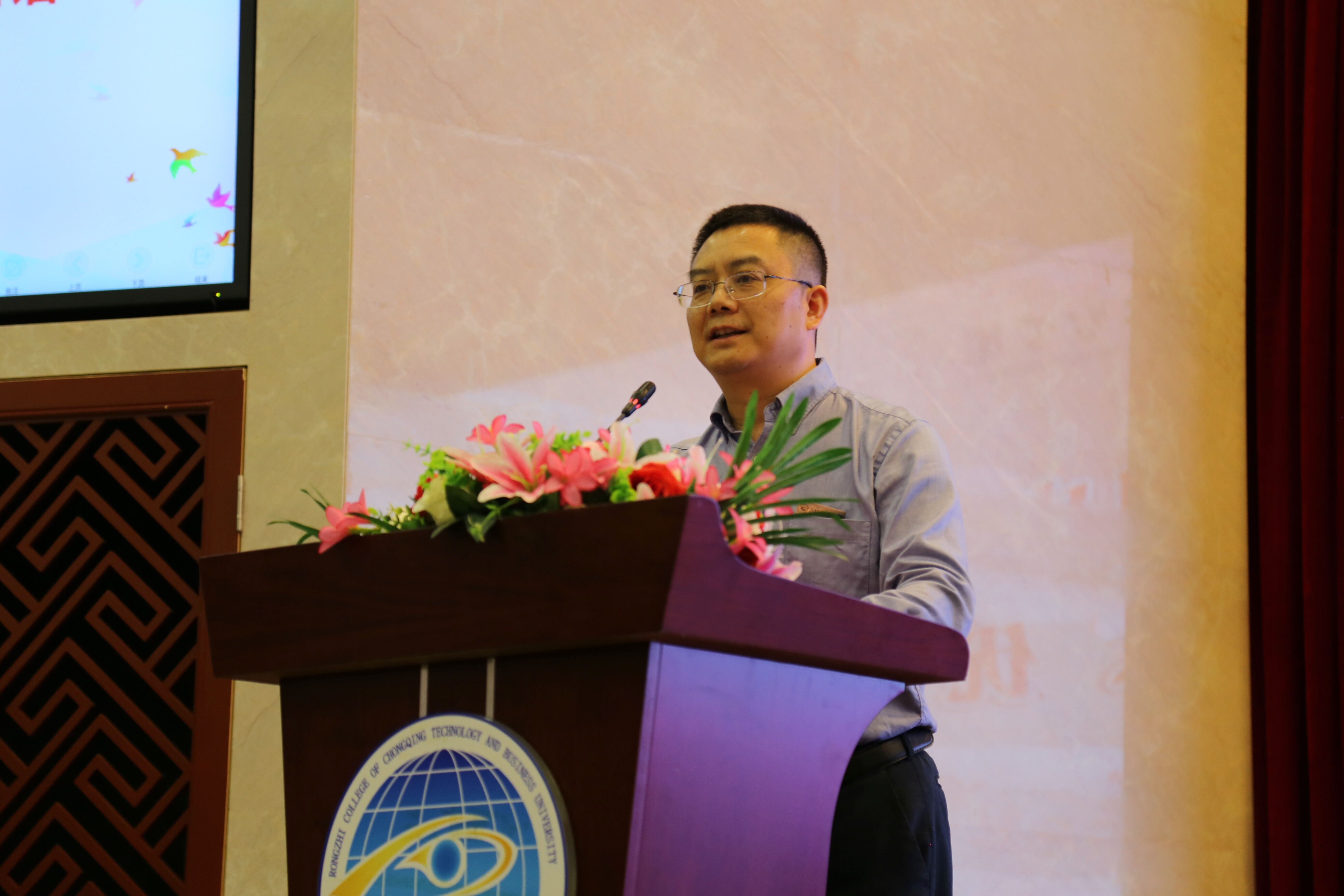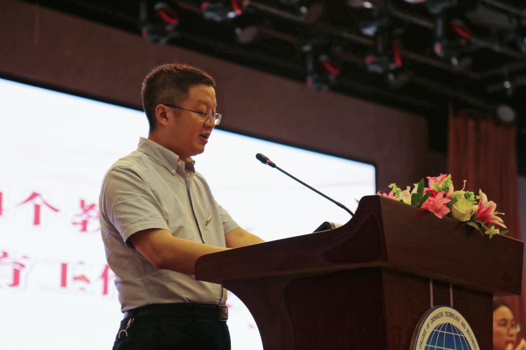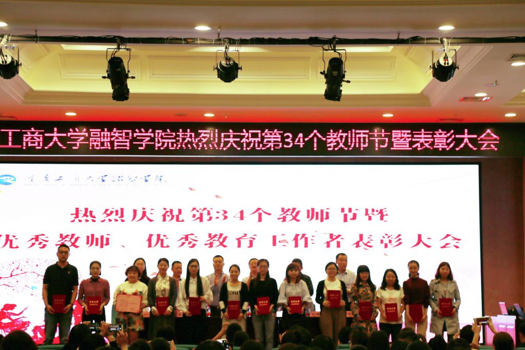 大会在激昂的国歌中开幕。沈民副校长、李春雷助理以及房朝君助理分别宣读了《关于表彰2017—2018学年度重庆工商大学融智学院优秀教师、优秀教育工作者的决定》等表彰文件。学校领导为受表彰的先进集体和个人颁发了荣誉证书。学生干部代表任佳欣,优秀教师代表李扬杰同志,2018在融智学院工作满十年教师代表尹蓉同志以及优秀辅导员代表游登贵同志上台分享了工作感言。
