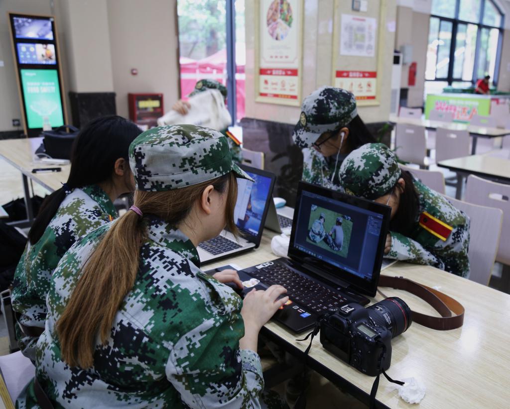 (通讯员梅赵紫 洪梳桓)军训时一个特殊的群体,他们十二个人,和其他参训学生不一样,他们每天都会带上两件东西,相机和纸笔,他们被称为记者连,另外,还有一个名字——军训记者团。