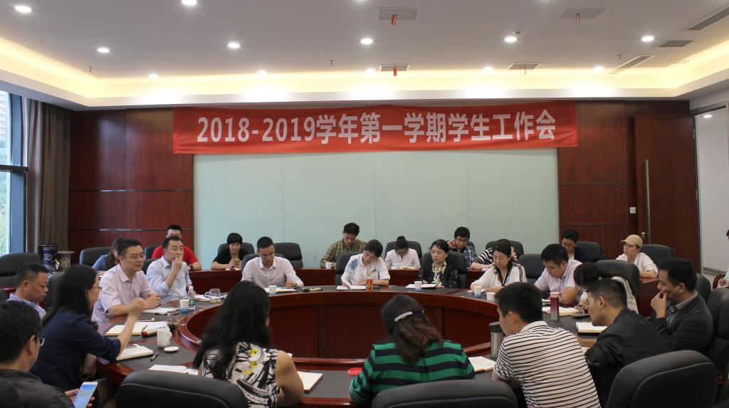 随后各职部门就本学期与学生工作相关内容进行了交流。教务处处长崔中山根据教育部部长陈宝生在成都新时代全国高等学校本科教育工作会议上的讲话精神,提出应对学生适当增负,严格设立淘汰机制,进一步发挥学生学习的主观能动性。靠谱的电子游戏平台官网处副处长罗婷婷对2018届毕业生就业情况进行了说明,并对2019届毕业就业工作启动进行了介绍。思政部部长常晓薇根据思政部现有课程开设情况,特别是通识课程的开设情况向大家做了详细汇报,她希望思政部相关课程能与党团部门及各学院进一步联动。党群工作部部长倪倩茜在从严治党的背景下,提出了进一步加强党建工作的思考,以及如何处理舆情信息的实用技巧。保卫处副处长欧英前提出应在学生中加强安全教育,树立安全意识,确保校园稳定。