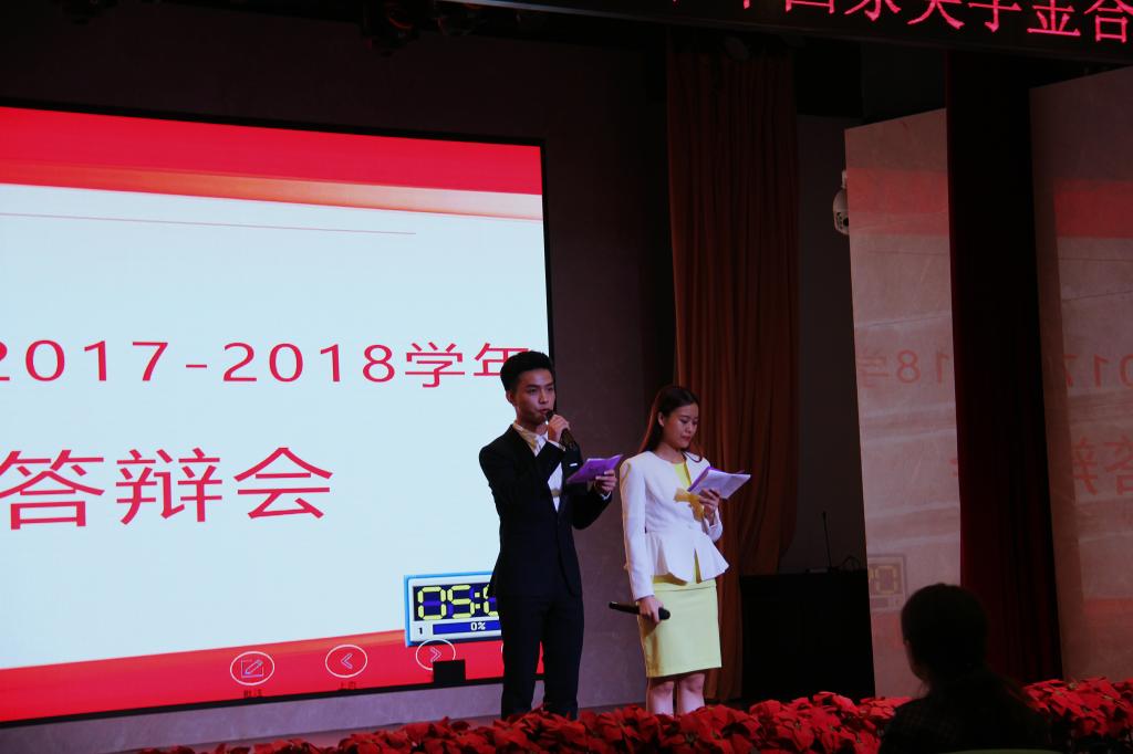 随着数位答辩选手依次上台,答辩场上气氛越趋激烈。能够成为融智学院千分之一的几率登上国奖答辩会赛台,他们必定经历过学业与能力的磨砺,才能化作今天那一颗颗熠熠生辉的星星。学习和工作是难能平衡的天枰,来自金融学院15级金融学专业CFA国际项目班的杨冰钰却能在自己的小空间里精确添加使天枰均衡的砝码。人人都记得不忘初心,方得始终,却总是忘记初心易守,始终难得。来自物流工程学院15级物流管理2班的程慧琳却始终坚信爱拼才会赢!大四的答辩选手高手如云,竞争风流,大三的选手们同样不落风采,奋勇直上。来自商务学院16级国际商务2班的朱佳宝曾多次参与多类竞赛,在各种社会实践中倾注热情,颇具积极影响力。