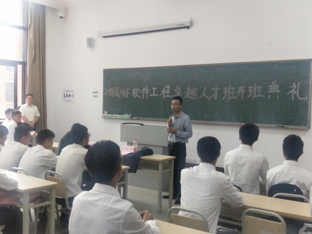 姜文院长首先阐述了学院对于人才班高度重视和大力支持的态度,表示作为融智学院转型的排头兵,人才班将作为重点教学项目进行打造,希望同学们以“自信、自律、感恩”作为今后学习中的重要准则,认真努力地学好专业技术、知识,不辜负学院、老师和家长的期望。