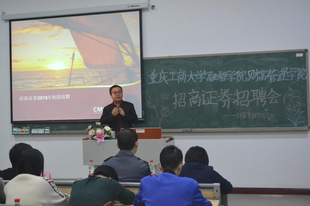 为了给广大的学子提供更多的就业机会,帮助提高19届毕业生就业率,重庆工商大学融智学院财富管理学院于2018年10月19日中午12:30在教学楼1420教室举行招商证券专场招聘会。