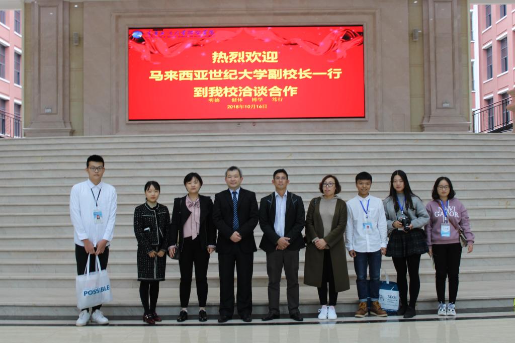 2018年10月16日下午15时,马来西亚世纪大学周素骏(Chu Sujiun)副校长、国际市场部王志文经理、世纪大学驻中国办事处主任田新玲老师及孔媛媛老师一行到我校访问并洽谈合作。
