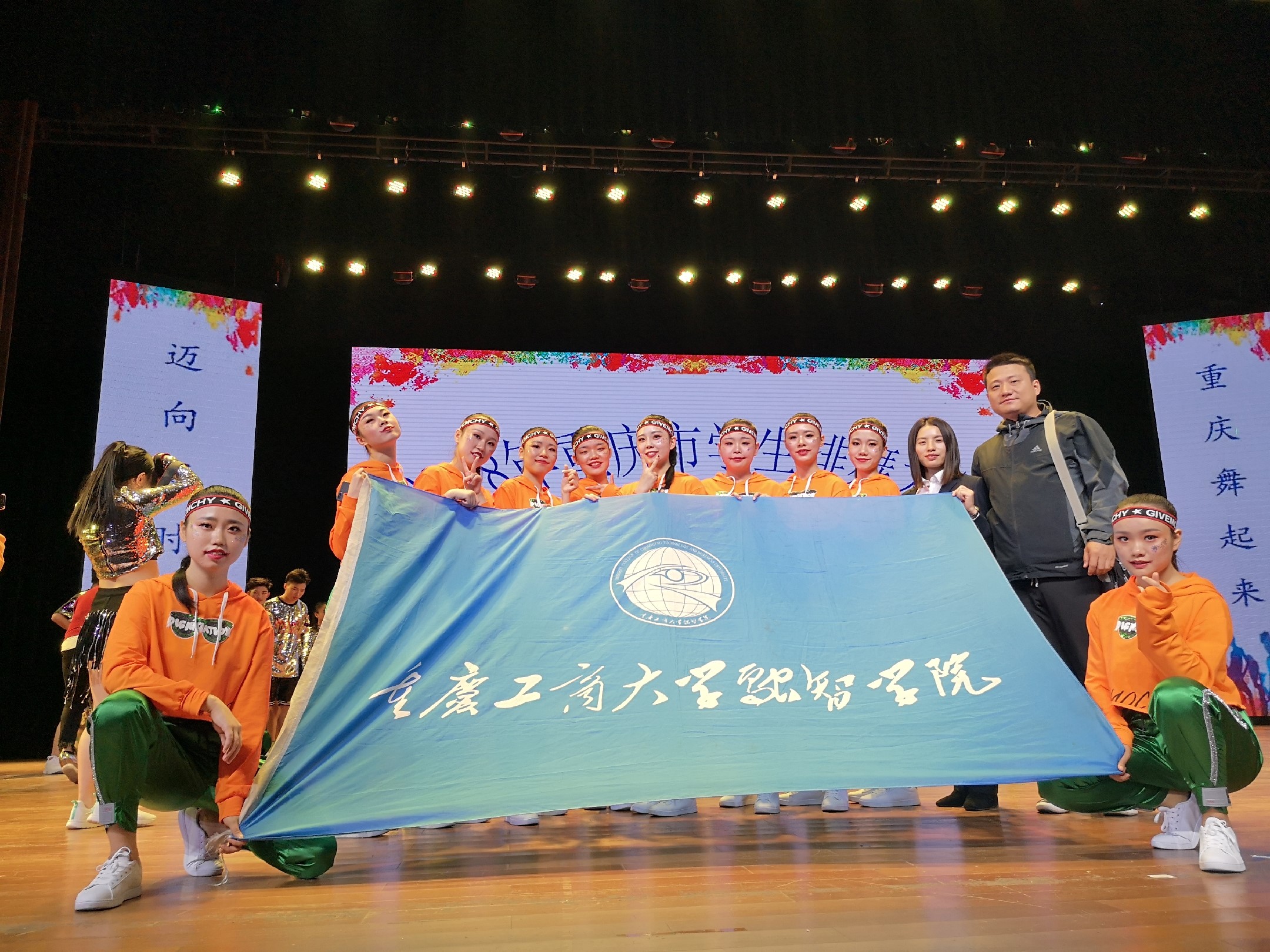 2018年10月18-20日,由重庆市教育委员会主办的大学生排舞比赛在四川外国语大学举行。经过三天的激烈角逐,我校OH排舞运动队首次参赛,并从16支高校队伍中突颖而出,获得大学组规定动作第六名的好成绩,在同类院校中名列前茅。其中刘燕芬和李佩莲同学在此次竞赛中被评为“体育道德风尚先进个人”。本次比赛由体育教研室主任丁鼎老师任领队,朱晓凤老师任教练,李佩莲、钟梦媛、黄娅等十二名运动员代表学校参赛。