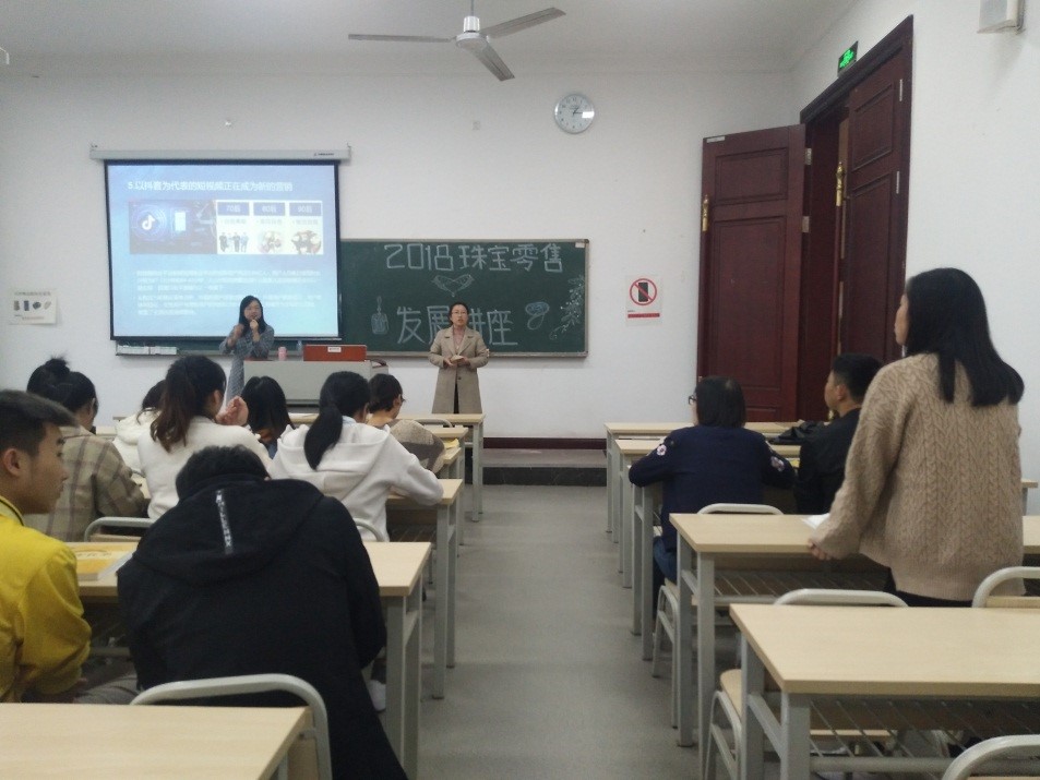 为激励贸经专业学生学习热情,了解零售业的发展与变革,提高零售技能,经济学院贸易经济学教研室组织的“2018年珠宝零售发展与变革”讲座,于2018年10月25日下午在1313教室顺利举行。