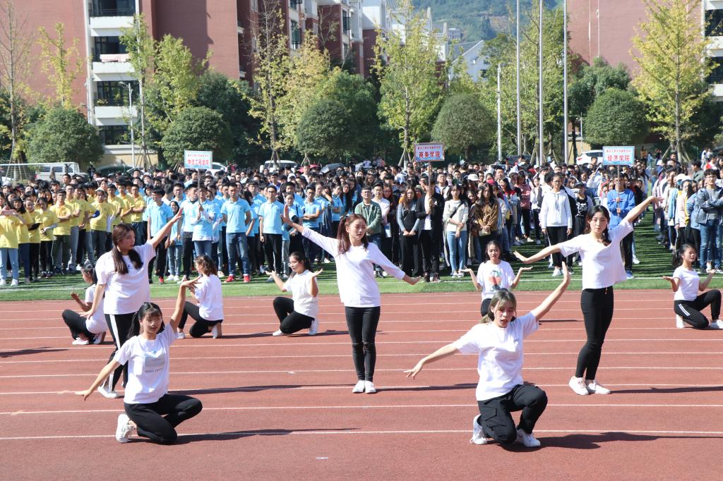 随着运动员代表和裁判员代表宣誓结束,各个学院带来的开场表演随即而来。首先,由管理工程学院和信息工程学院带来开场舞表演;紧接着,物流工程学院与经济学院相继上场,最后是来自基础部的“OH排舞队”的表演,她们充分展现了自己的青春活力,为全体师生带来了精彩的表演。热烈激昂的舞蹈,蓬勃向上的活力,无一不在展现融智学子的风采。