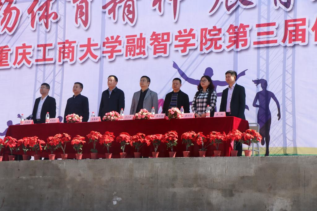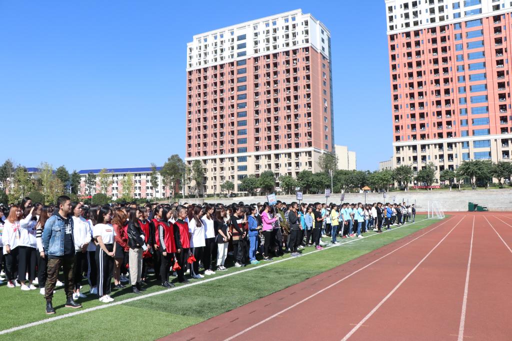 (通讯员:邓欢 梅赵紫)明媚阳光洒融智,运动健儿挥汗水。2018年11月2日12点10分,第三届体育文化节开幕式在学校运动场隆重举行。本次活动出场嘉宾有校党委书记丁广龙、校党委副书记陈龙国、校长助理兼体委李春雷主任、党政办主任王晓云、学生处处长唐川川、学生处副处长兼团委书记李刚、基础课教学部副主任吕福起。开幕式由基础课教学部副主任吕福起主持,学校各学院学生代表队及教职工代表队参加。