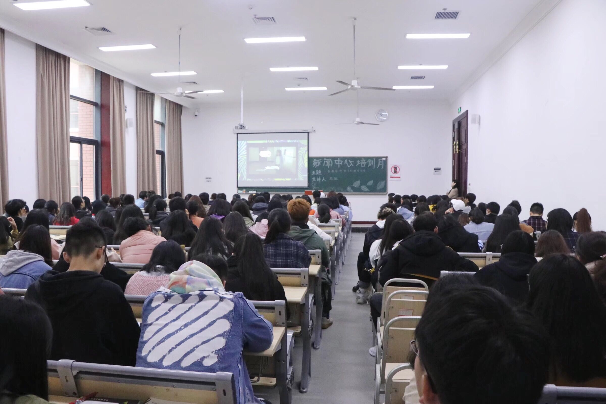 近年来新媒体的发展日新月异,而在新媒体态势下,新闻传播也出现了“人人都是传播者”、“交互沟通渠道畅通”、“时空限制被打破”的新特征。那么在新媒体视野下的新闻写作又该如何进行呢?为提高新闻中心及学校其他二级部门宣传工作的新闻稿写作水平,2018年11月7日中午,由党群工作部主办、新闻中心承办,并邀请拥有丰富实战经验的李敏老师,前来我校开展了新闻稿写作专题培训会,出席此次会议的嘉宾有党群工作部冉佳佳老师,部分学院学团宣传部人员及新闻中心全体人员近200余人参加了本次专题培训会,现场座无虚席。